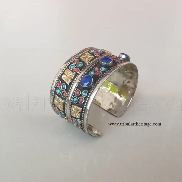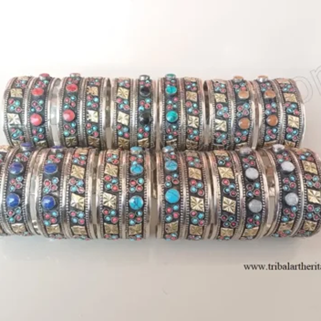 กำไลข้อมือแฟชั่นแบบกุชชี เยอรมันซิลเวอร์ เครื่องประดับแบบดั้งเดิมของชาวอัฟกัน ทำด้วยมือ เครื่องประดับชนเผ่าสำหรับผู้หญิง