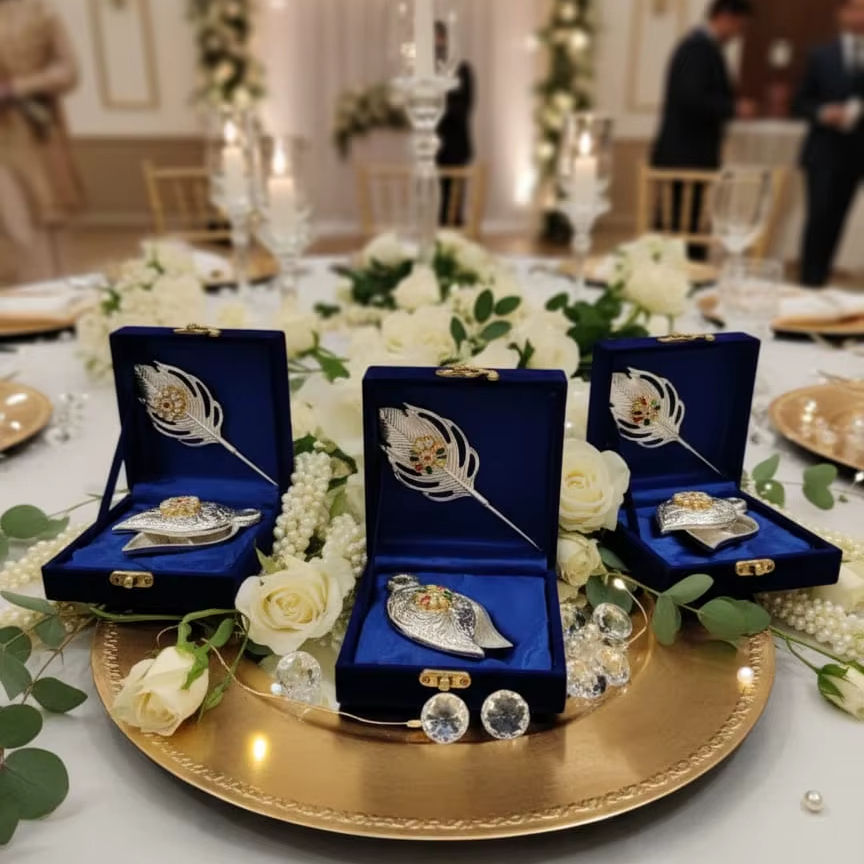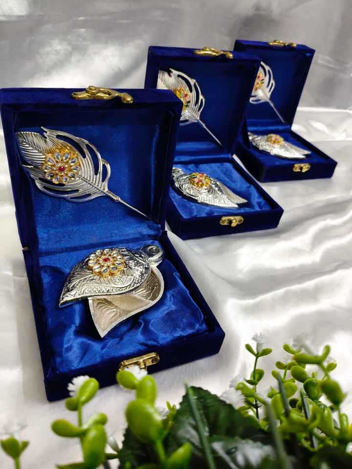 ที่ใส่โรลีติกกาแบบชุบเงินเยอรมัน พร้อมแท่งและกล่องของขวัญ ทำจากโลหะทนทาน สำหรับห้องบูชา งานดีวาลี และของชำร่วยงานแต่งงาน