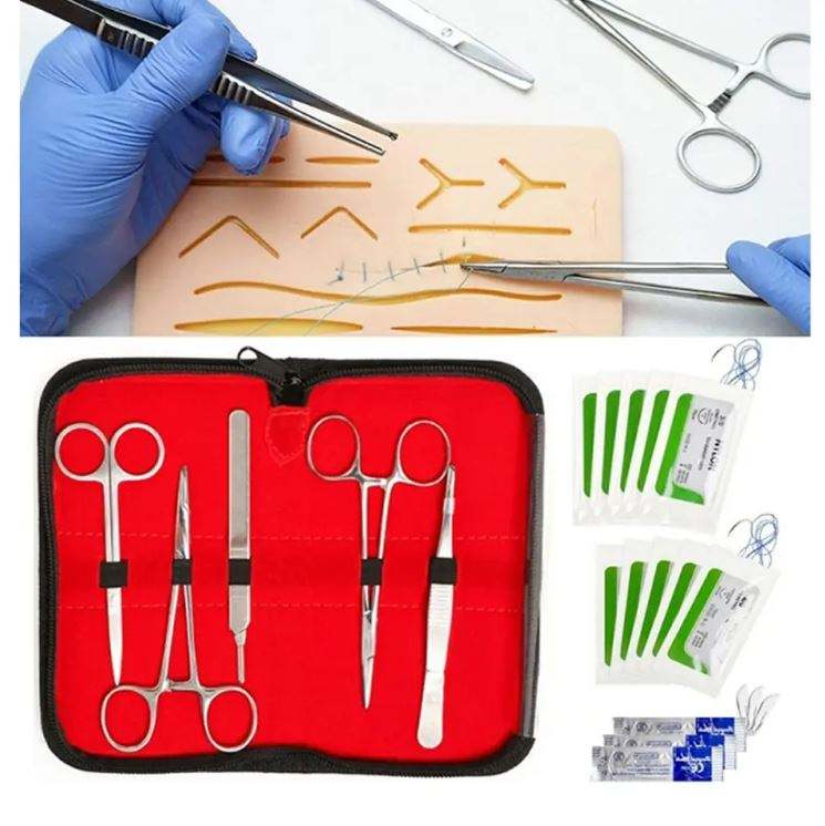ชุดเครื่องมือผ่าตัดขั้นสูง 9 ชิ้น ผลิตจากสแตนเลสเยอรมัน พร้อมแหนบ คีม ด้ามมีดผ่าตัด และชุดอุปกรณ์เย็บแผล