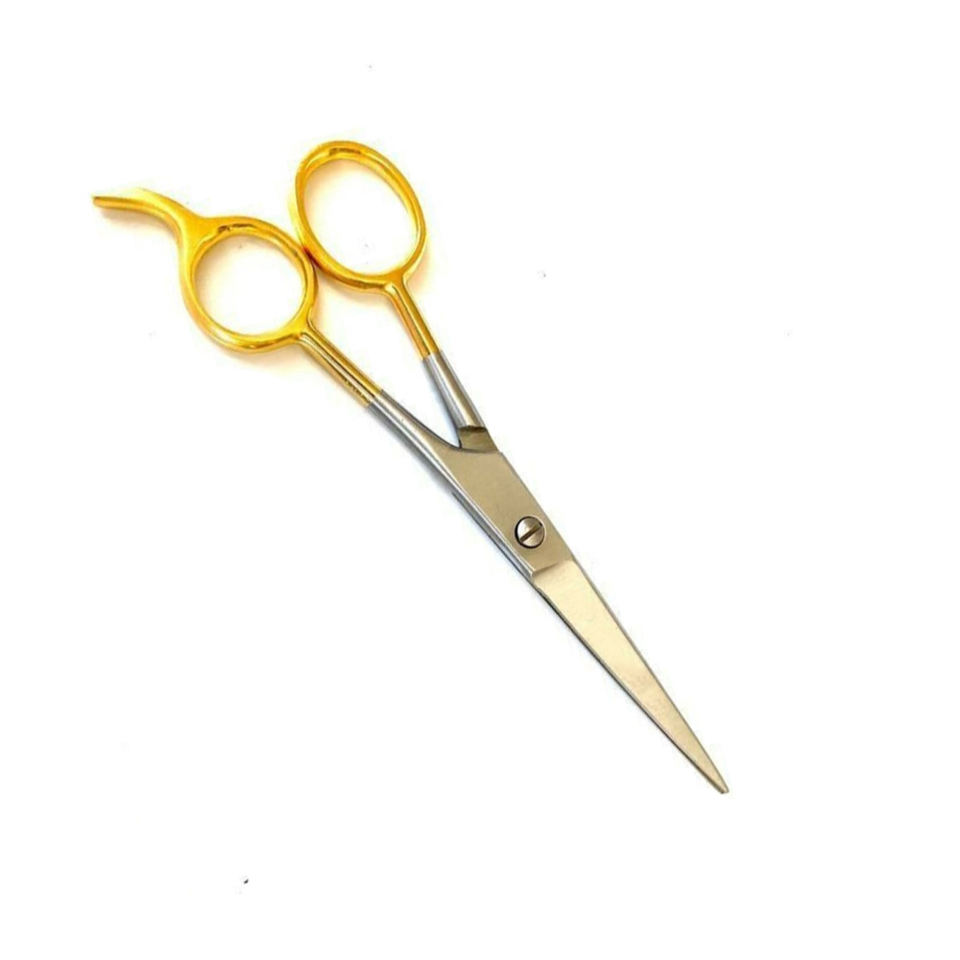 กรรไกรตัดผมสแตนเลสสตีลเยอรมันสีทองครึ่งใบมีดตรงที่เหลือนิ้วและสกรู