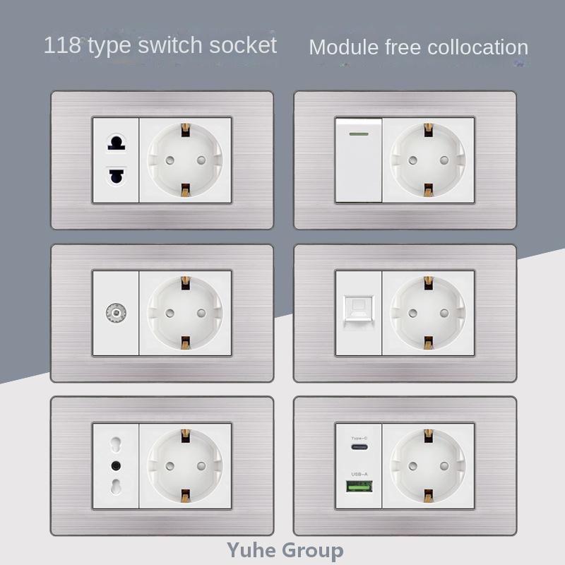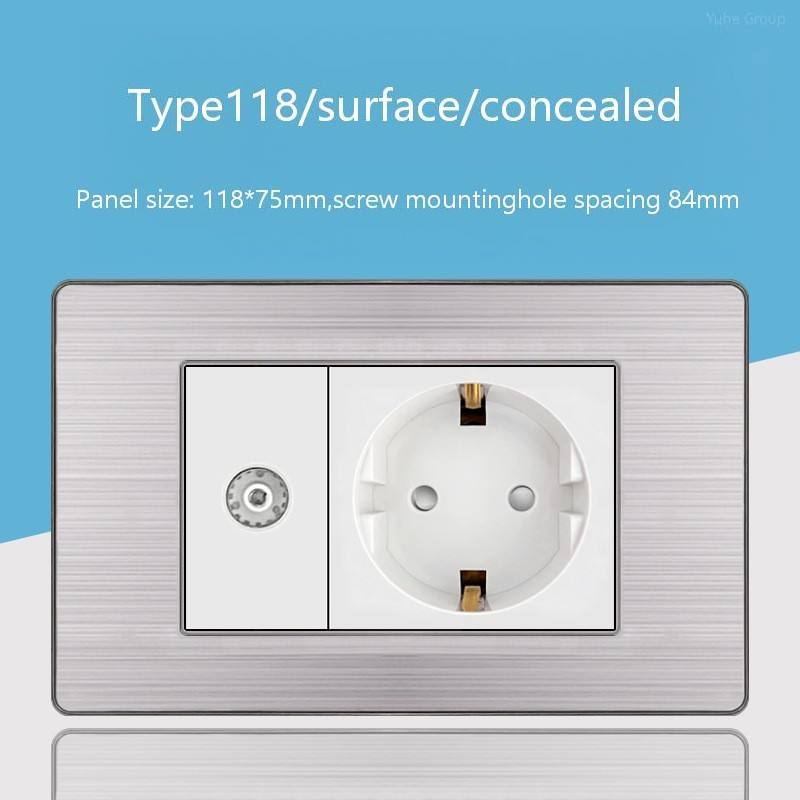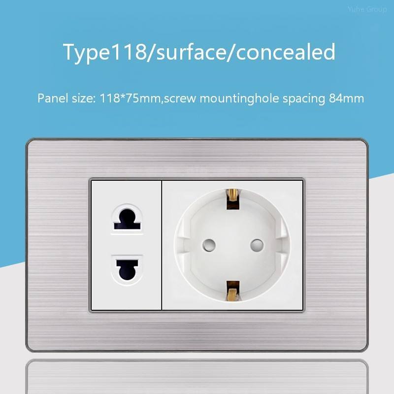 ปลั๊กและเต้ารับมาตรฐานเยอรมัน แผงสัมผัสสแตนเลส เต้ารับติดผนัง AC 20A ปลั๊กไฟ IP20 ดีไซน์ทันสมัย