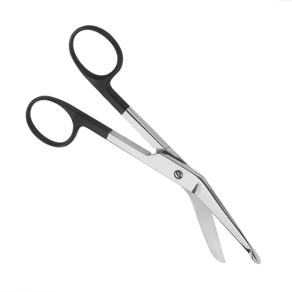กรรไกรตัดผ้าพันแผลเหล็กกล้าเยอรมันใบมีดโค้ง6นิ้วด้ามจับเคลือบสีดำกรรไกรสำหรับใช้ทางการแพทย์