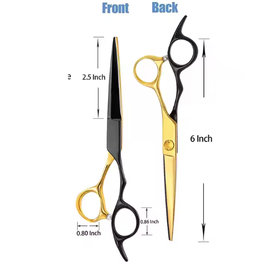 German Steel Barber Hair Cutting Scissors Black Gold Coated Straight Sharp Blade with Finger Rest for Beauty Salon Use