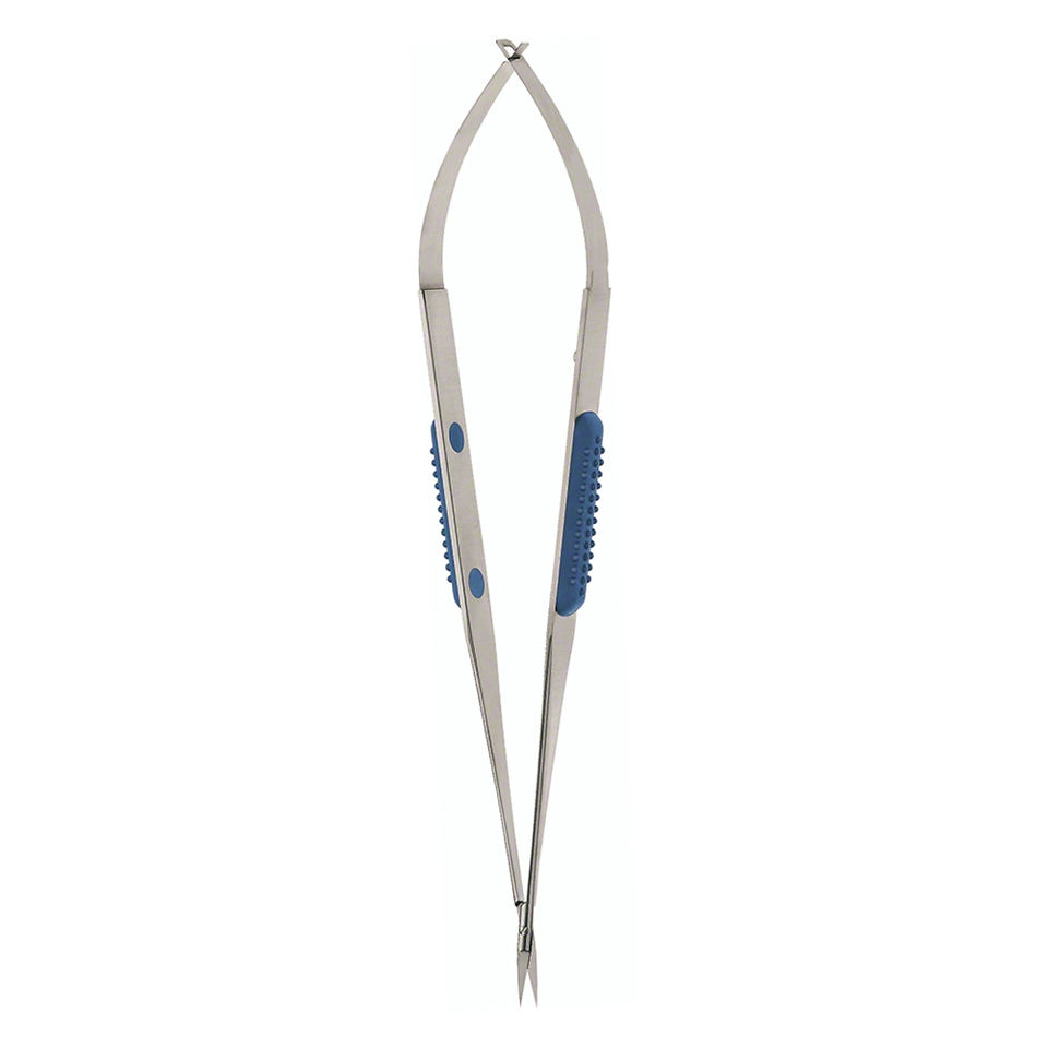 กรรไกรไมโครเหล็กเยอรมันทรายสําเร็จรูปใบมีดตรงคมเครื่องมือผ่าตัด Neuro กรรไกรไมโครพร้อมที่จับยาง