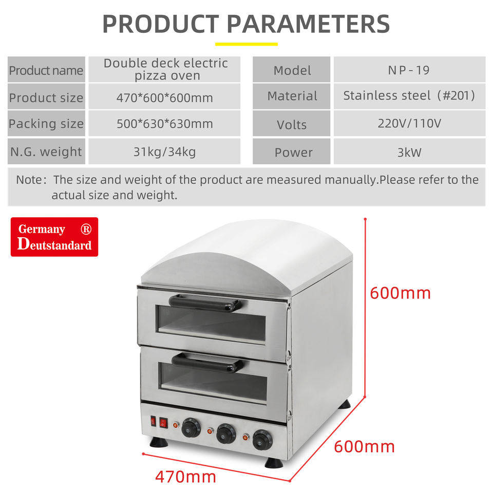 เตาอบไฟฟ้าสองชั้นแบบมาตรฐานเยอรมัน NP-19 สำหรับใช้ในเชิงพาณิชย์และอุตสาหกรรม ทำจากสแตนเลส เหมาะสำหรับร้านพิซซ่า