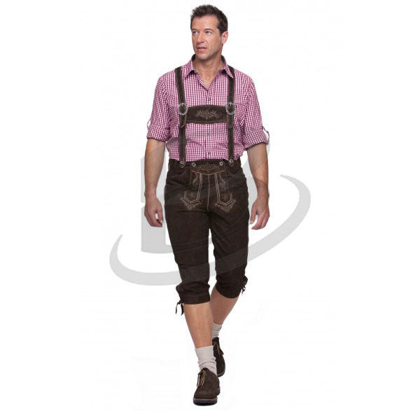 ชุดคอสเพลย์งานปาร์ตี้แฟนซีสไตล์บาวาเรียนสำหรับผู้ชาย ชุดเบียร์เทศกาลอ็อกโทเบอร์เฟสต์แบบดั้งเดิมของเยอรมัน กางเกงขาสั้นหนัง Lederhosen พร้อมสายรัดเอว
