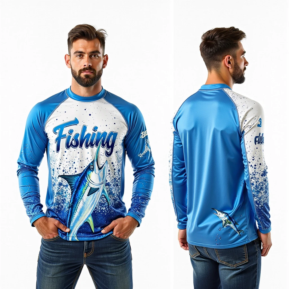 เสื้อตกปลาแขนยาวสำหรับผู้ชายผ้า dryfit น้ำหนักเบาและ UPF 50เหมาะสำหรับสภาพอากาศที่อบอุ่น