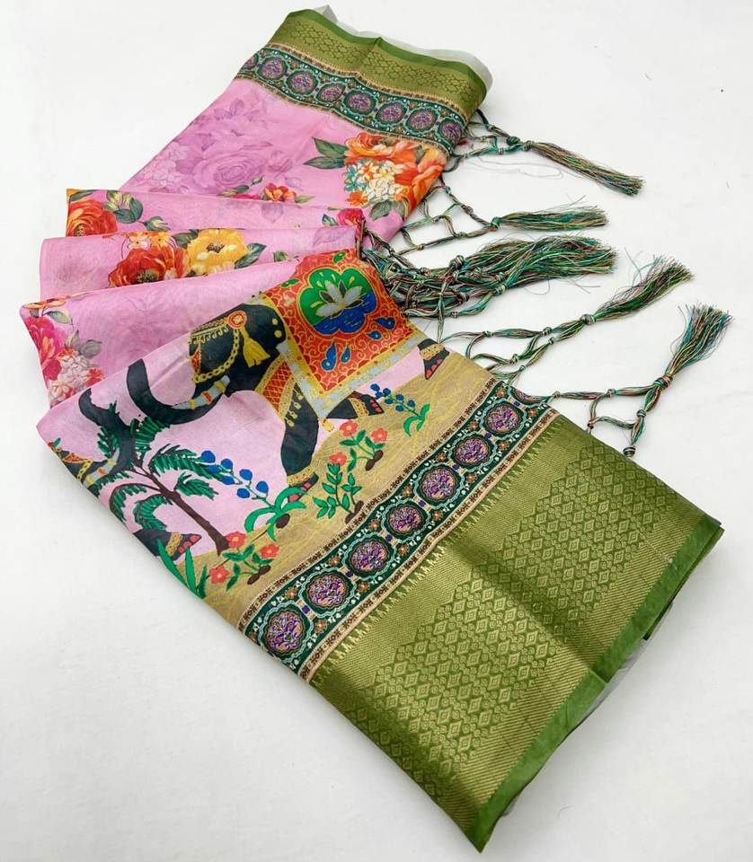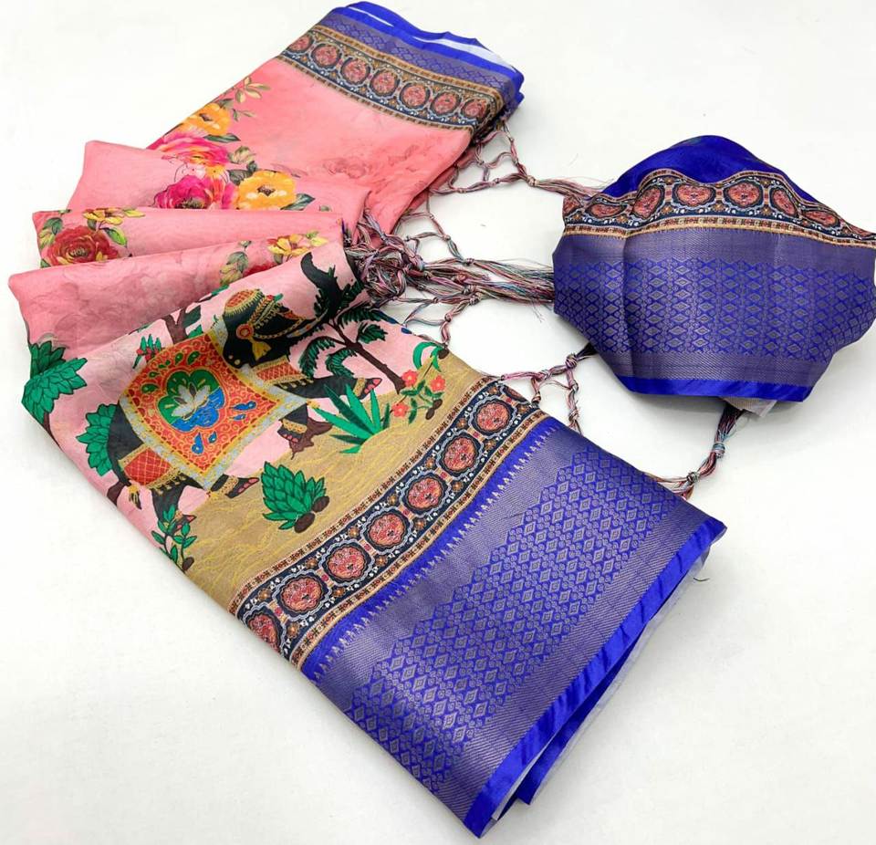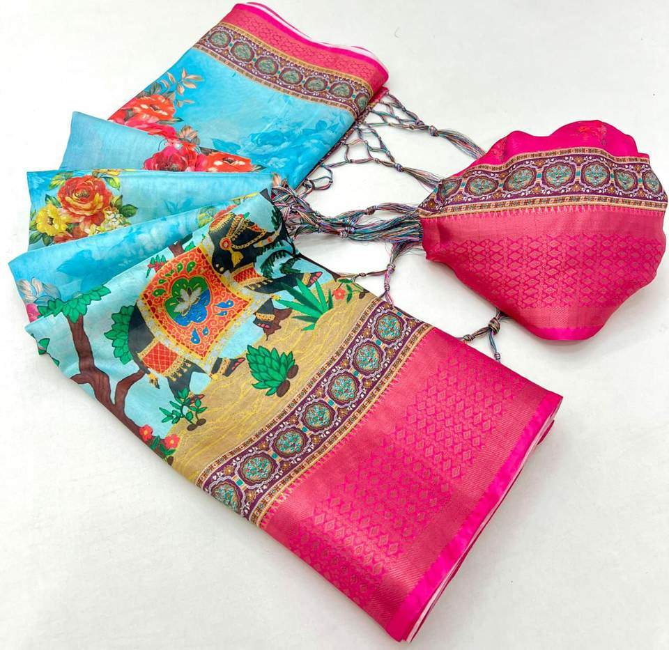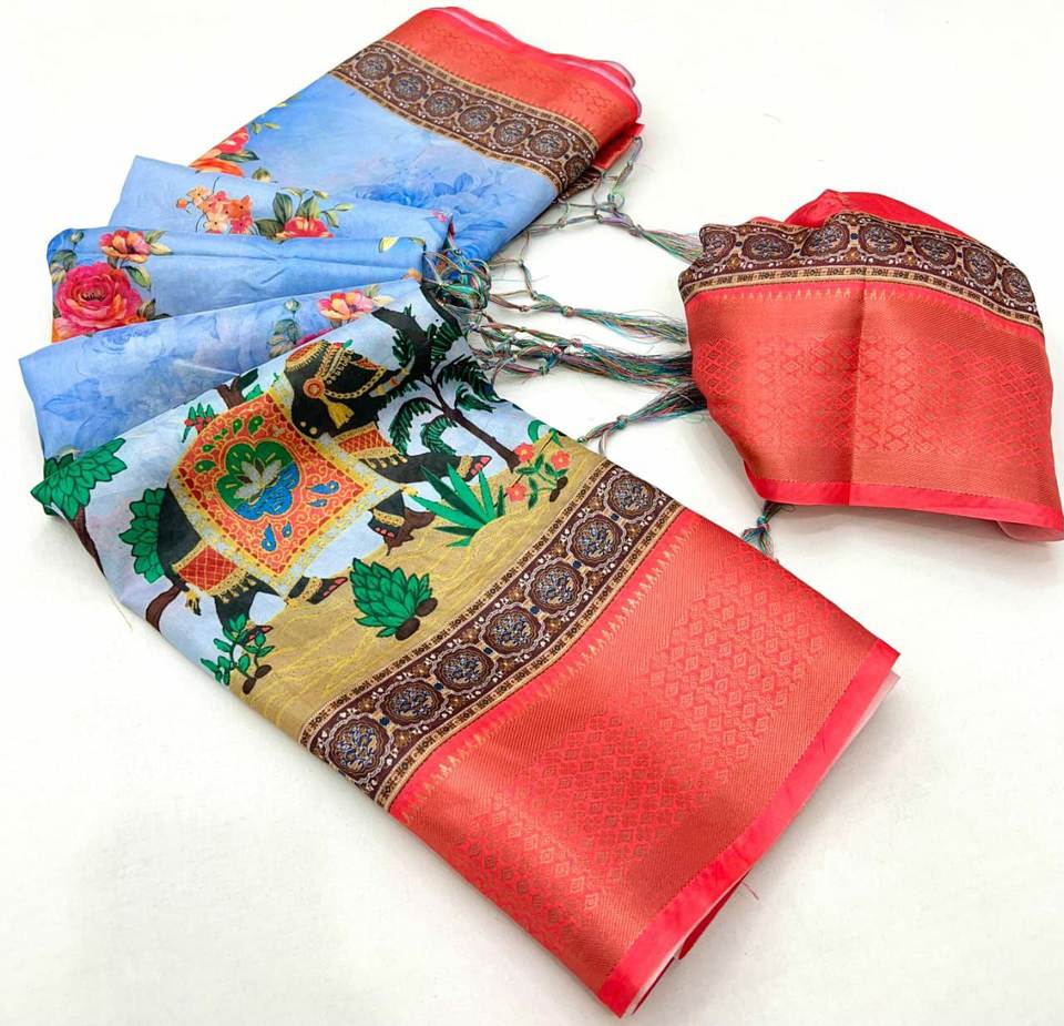 ได้รับพร้อมที่จะซื้อสไตล์ที่น่าสนใจมากที่สุดดีไซน์ใหม่พิมพ์ดิจิตอลคิตตี้ปาร์ตี้พิเศษ5.5 MTR ยาวแฟนซี Saree withstole