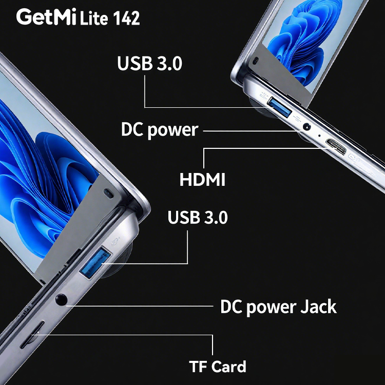 Getmi Lite 142ขายส่ง14นิ้ว TN 1366*768 8GB LPDDR4 128GB/256/512 SSD ตัวอย่างรองรับแล็ปท็อปสำหรับการศึกษาของนักเรียน