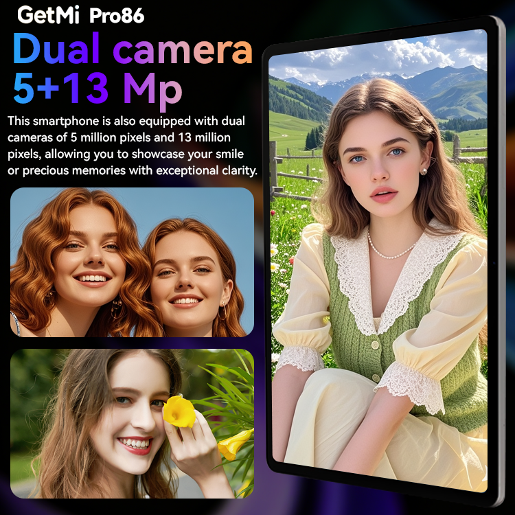 Getmi Pro 86กล้องคู่5 + 13MP 10.1 "IPS 1280*800 4GB + 64GB 4G LTE Android 14 GMS ผ่านไป5000mAh แท็บเล็ตพีซี