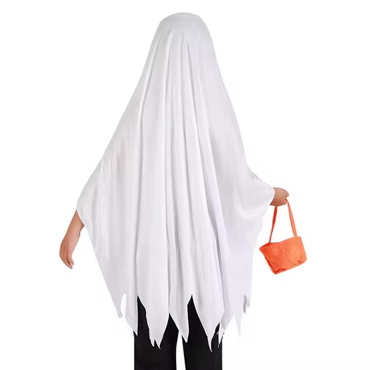 ชุดคอสเพลย์ผี ผ้าคลุมฮาโลวีนสีขาว ผ้าคลุมขาดๆ พร้อมกระเป๋าฟักทอง ชุดแฟนซีน่ารักสำหรับงานปาร์ตี้ ทำจากโพลีเอสเตอร์ สำหรับทุกเพศ