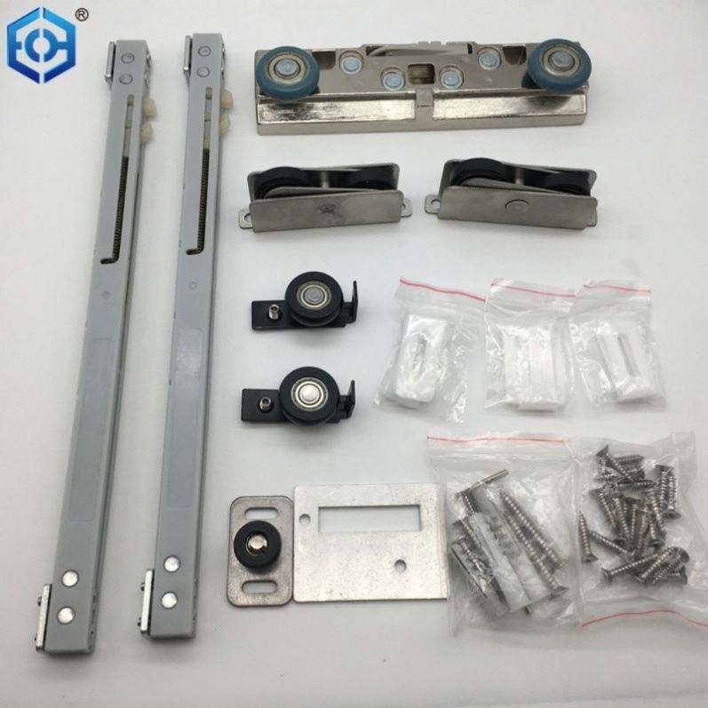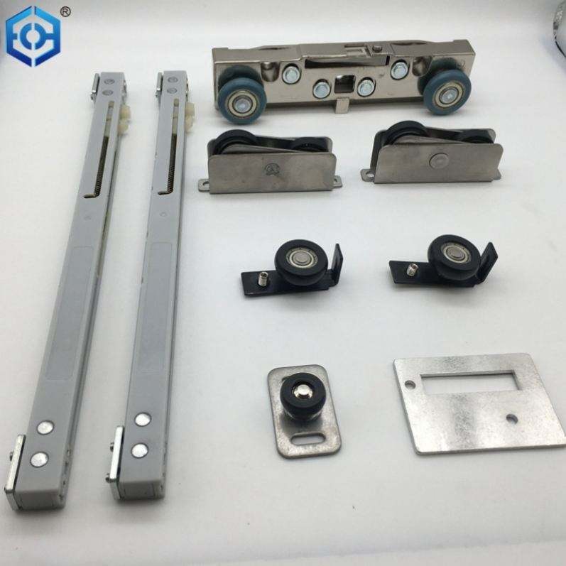 รางเลื่อนประตูแบบซ่อน Ghost Door สำหรับประตูห้องน้ำ บานเลื่อนแบบสองทางพร้อมระบบกันกระแทก อุปกรณ์ฮาร์ดแวร์สำหรับประตูไม้