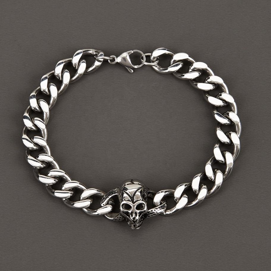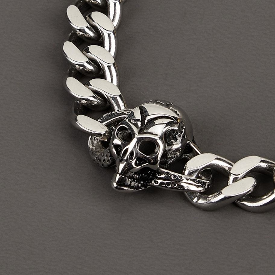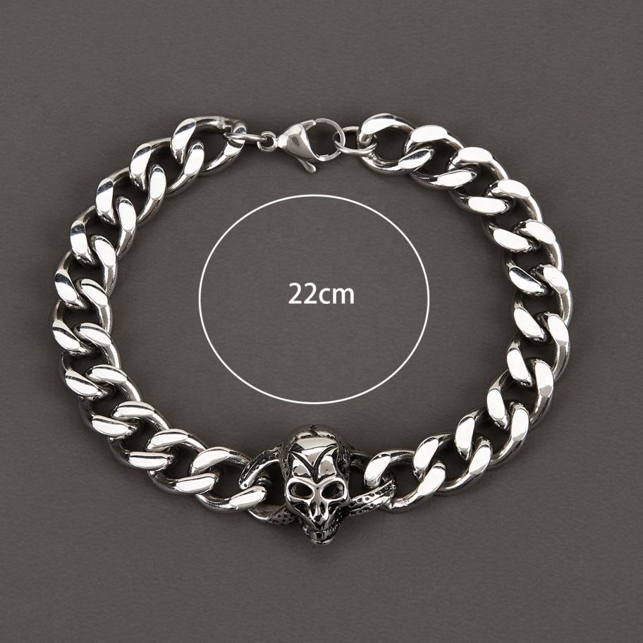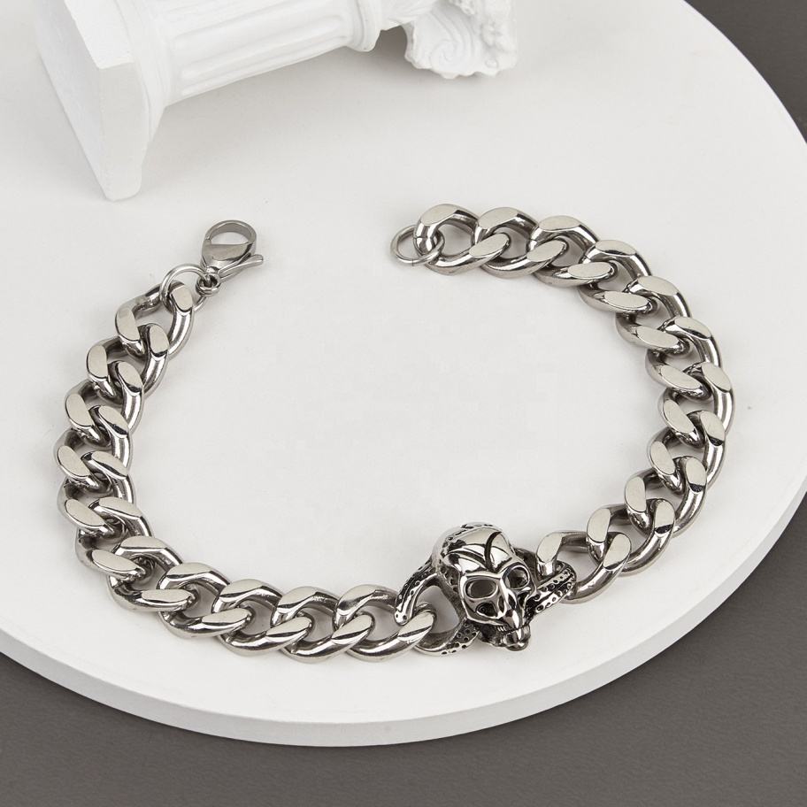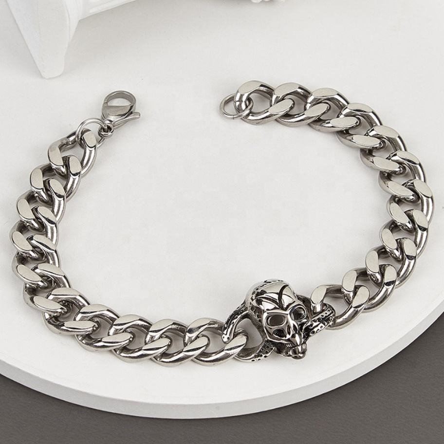 กำไลข้อมือสแตนเลสสตีลลายหัวกะโหลกแบบคิวบันลิงค์สำหรับผู้ชาย