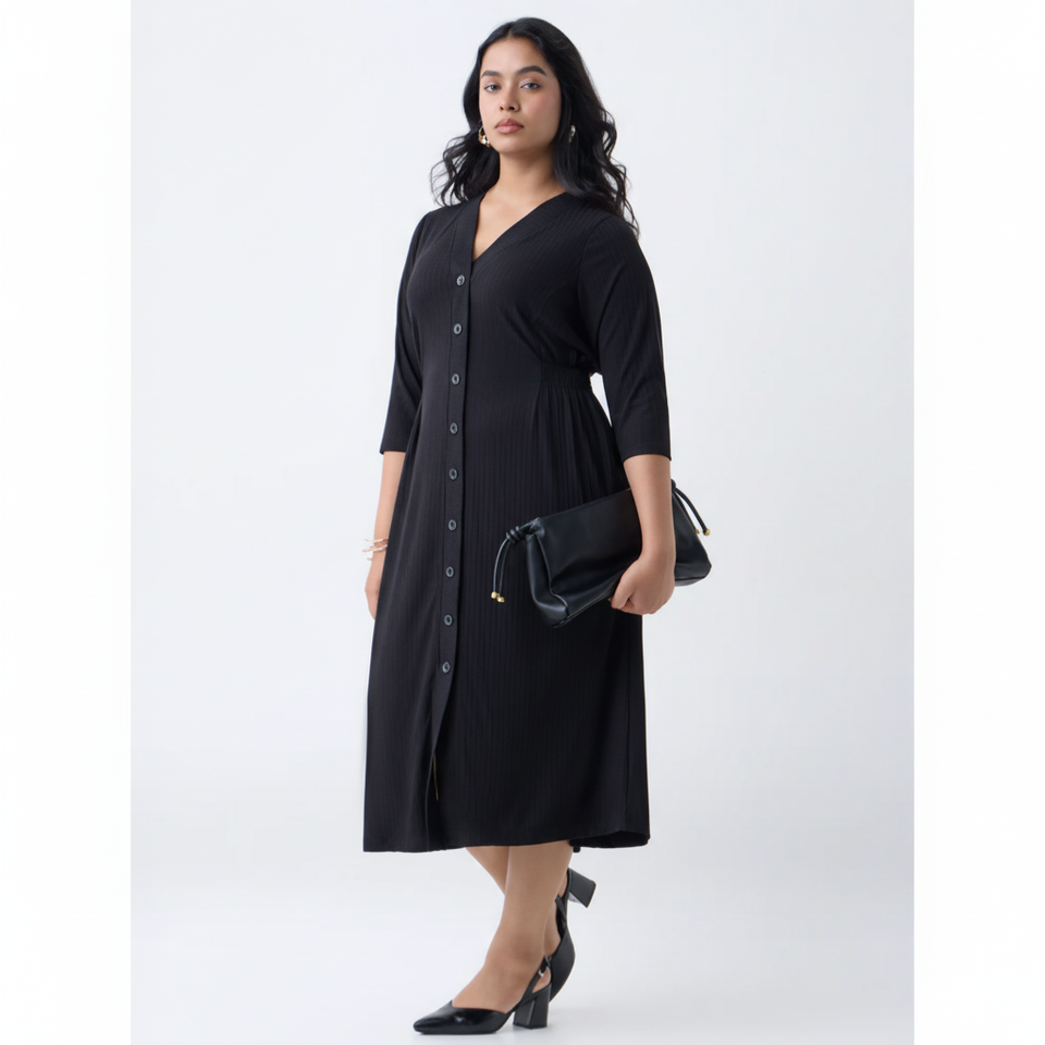 Gia ชุดเดรสลายทางสีดำด้วยตัวเอง