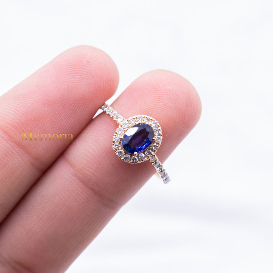 แหวนไพลินสีน้ำเงินและเพชรสีเหลืองทอง