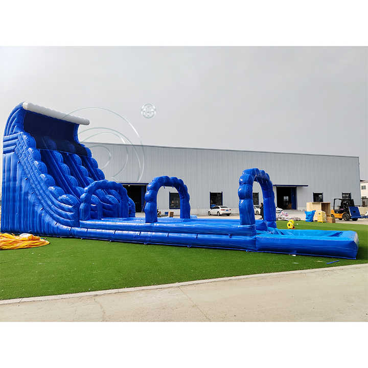 สไลเดอร์น้ำเป่าลมขนาดใหญ่สำหรับผู้ใหญ่ ยาว 18 เมตร สไลเดอร์สระน้ำเป่าลม PVC สีรุ้ง พร้อมสระน้ำที่ถอดออกได้