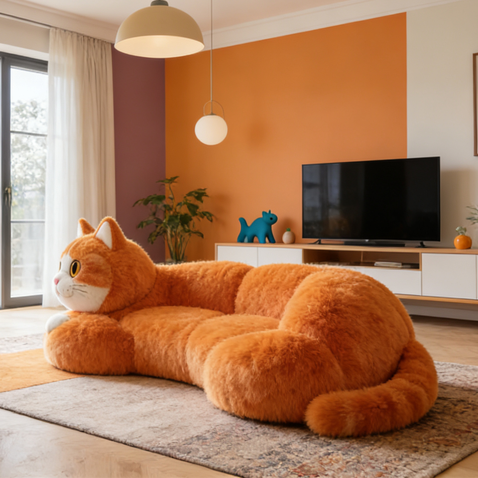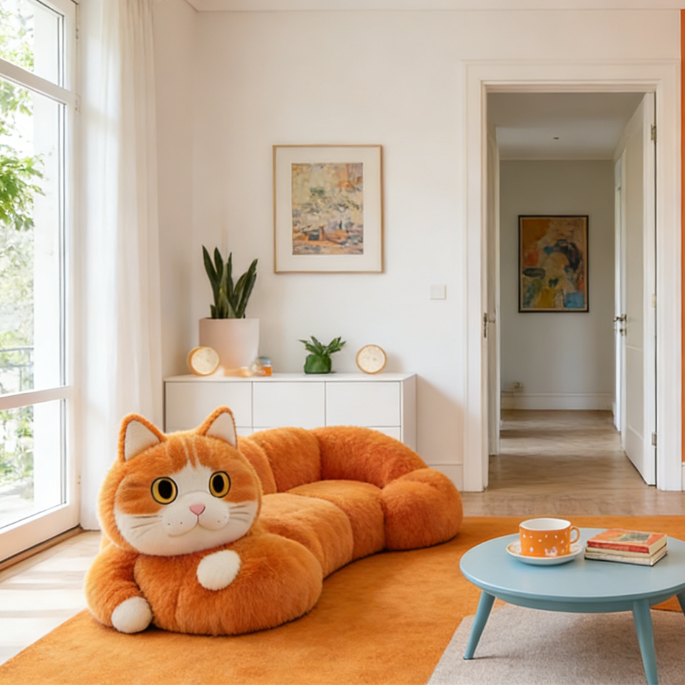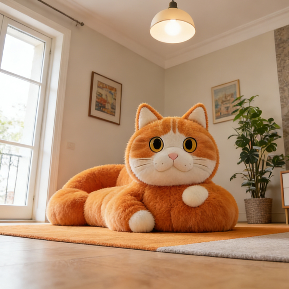 โซฟาเบดตุ๊กตาแมวขนาดยักษ์ เก้าอี้พักผ่อนรูปสัตว์ขนาดใหญ่ น่ารัก สีส้ม รูปแมวเหมียว บีนแบ็ก โซฟา ตกแต่งบ้านสุดสร้างสรรค์