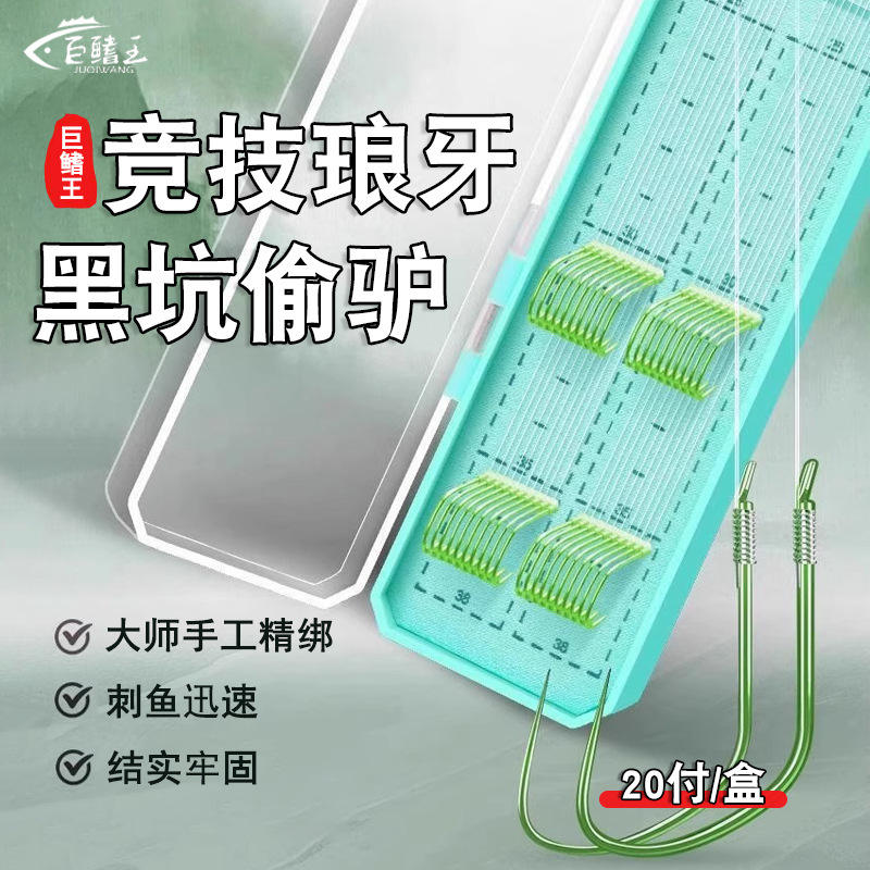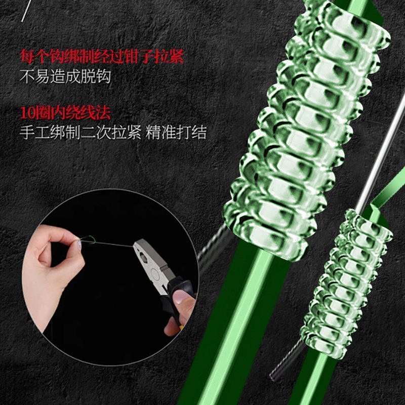 ตะขอคู่สำหรับตกปลาที่มีความแข็งแรงสูงทำจากเหล็กกล้าคาร์บอนสูงตะขอสำหรับแข่งฟันหมาป่าขนาดยักษ์