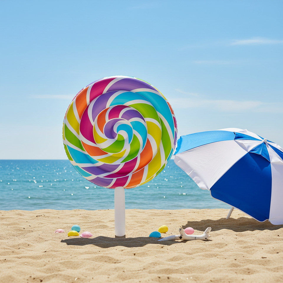 แพยางเป่าลมรูปอมยิ้มขนาดใหญ่, แพยางลายสายรุ้งสำหรับผู้ใหญ่, แพยางสำหรับปาร์ตี้ริมสระน้ำหรือทะเลในช่วงฤดูร้อน