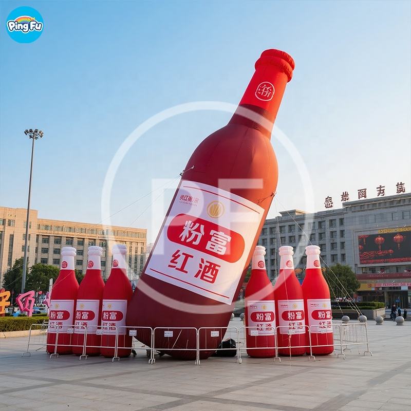ลูกโป่งขวดเบียร์เป่าลมทรงขวดไวน์แดงแบบเป่าลมพิมพ์โลโก้ตัวอักษรขนาดยักษ์