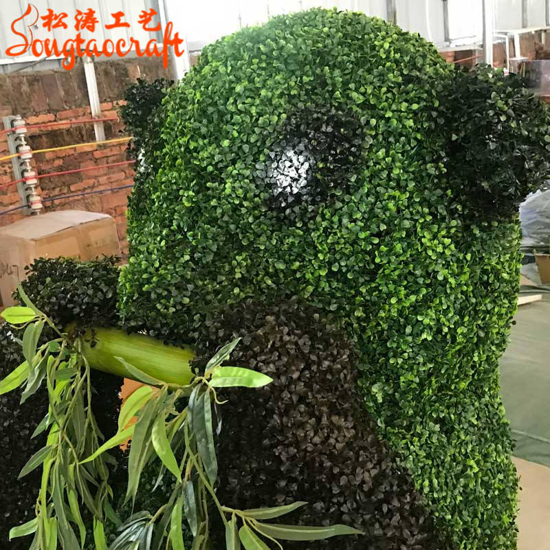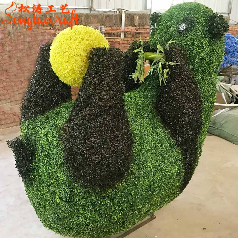 ประติมากรรมรูปแพนด้าจากหญ้าเทียมบนโครงลวดขนาดใหญ่ สำหรับตกแต่งสวนในร่ม