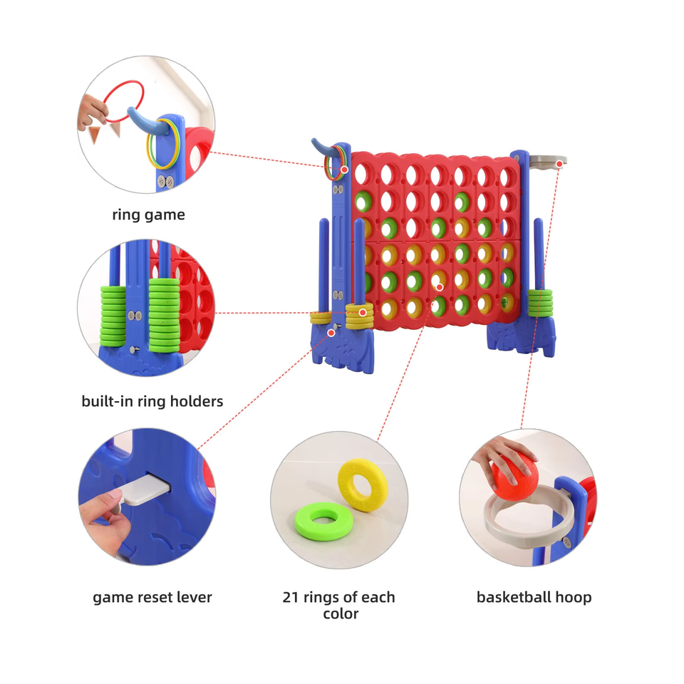 กระดานเกมส์ต่อแถวสี่ช่องขนาดใหญ่ ทำจากพลาสติก สำหรับเด็กอนุบาลและเด็กเล็ก เล่นได้ทั้งในบ้านและนอกบ้าน เหมาะสำหรับเด็กอายุ 0-24 เดือน ใช้ได้ทั้งเด็กชายและเด็กหญิง