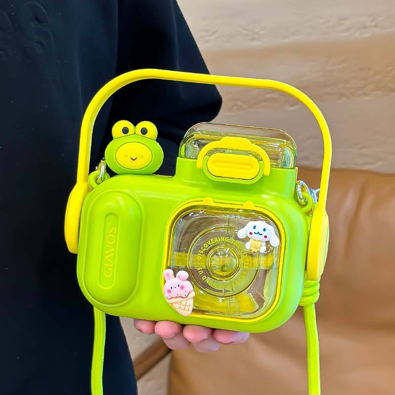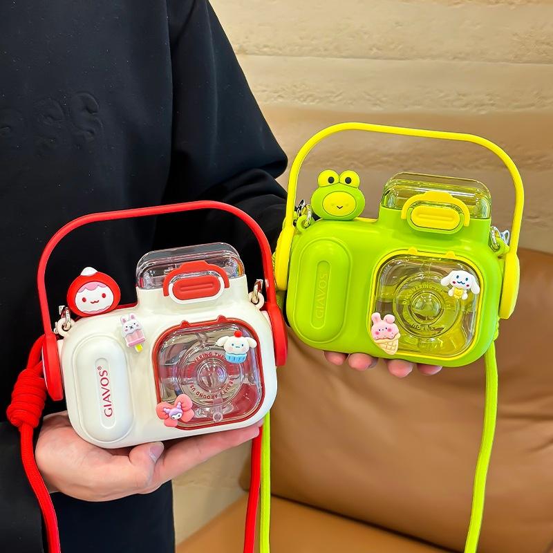 ขวดน้ำพลาสติกกันตกสำหรับเด็ก ลายการ์ตูนน่ารัก พร้อมหลอดดูด ยี่ห้อ Giavos รุ่น Plush Camera สไตล์สปริง 2024