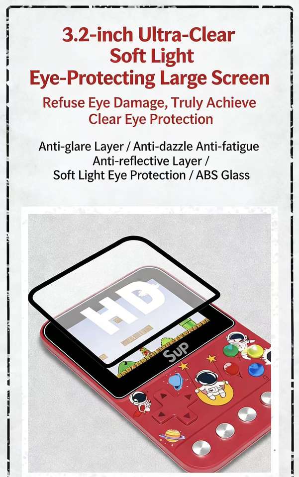 กล่องของขวัญบรรจุเครื่องเล่นเกมพกพาสไตล์เรโทร พร้อมพอร์ตชาร์จเร็ว USB ตัวเครื่องกันฝุ่น อุปกรณ์เล่นเกมคลาสสิกสำหรับของขวัญวันหยุด