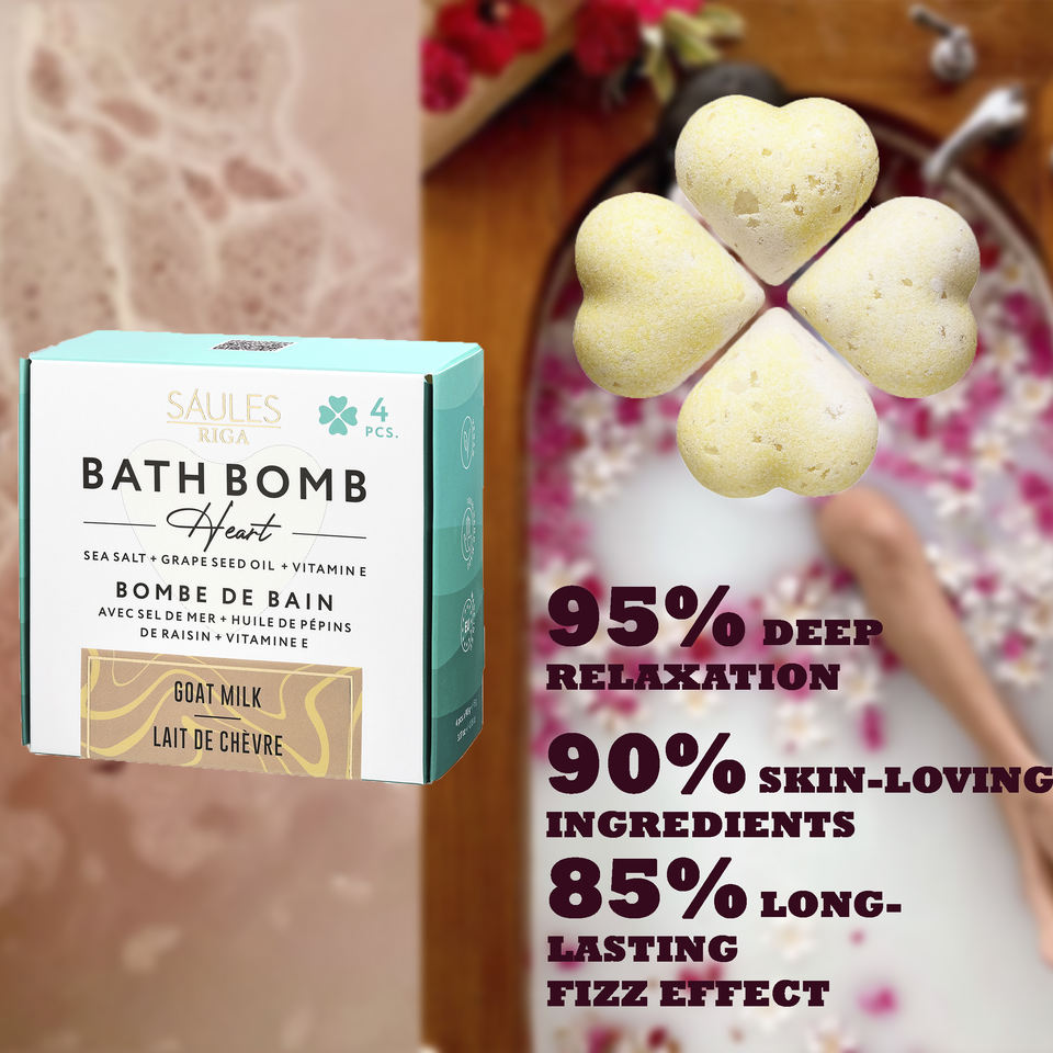 กล่องของขวัญวันสตรี ชุดบาธบอมออร์แกนิกระดับพรีเมียม 4 ชิ้น รูปหัวใจ พร้อมกลิ่นนมแพะ รับผลิตแบบ OEM ODM