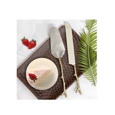 ชุดไม้พายเค้กสแตนเลสชุดเสิร์ฟเค้กสีเงินขัดเงาสีทองนูน