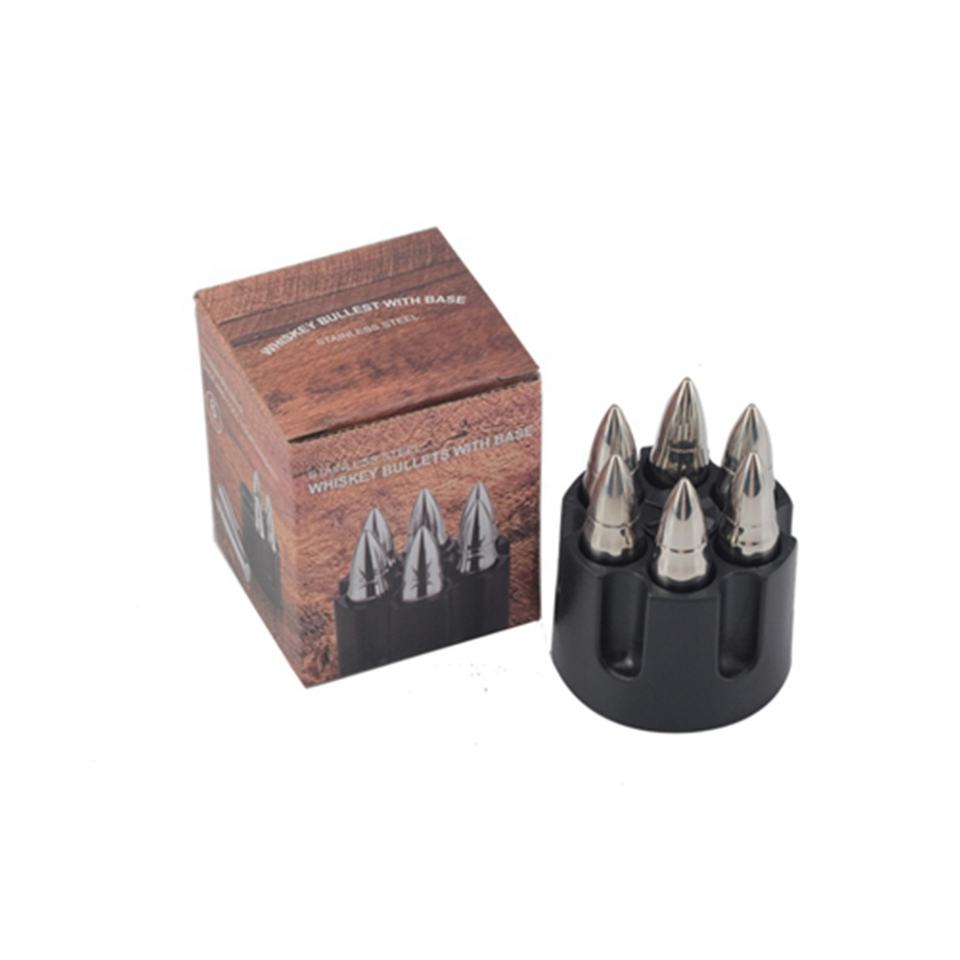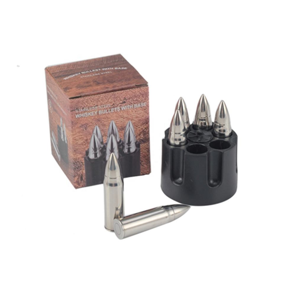 ชุดของขวัญแช่เย็นวิสกี้อุปกรณ์เสริมสแตนเลสทรงกระสุนก้อนน้ำแข็งวิสกี้โลหะ
