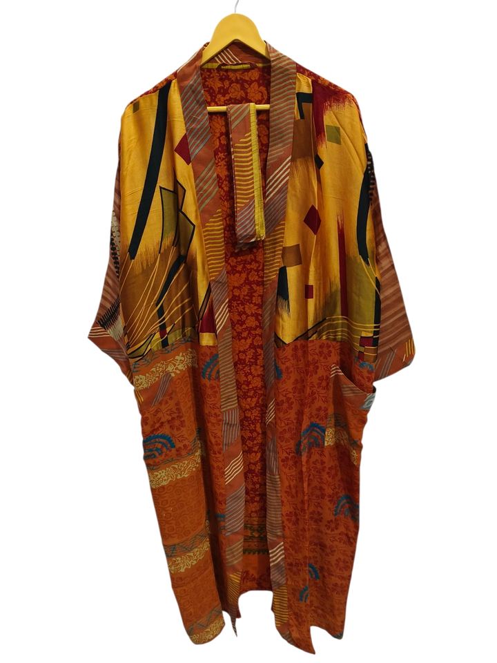 เสื้อคลุมกิโมโนผ้าไหมปะติดสำหรับเป็นของขวัญสำหรับเธอชุดคลุมบิกินี่ชุดคลุมสำหรับใส่กลางคืนเสื้อคลุมยาวทำด้วยมือสไตล์อินเดียวินเทจผ้าไหมแบบนำกลับมาใช้ใหม่
