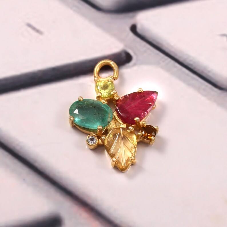 จี้พลอยสีทอง925เงินสเตอร์ลิงพร้อมพลอยทัวร์มาลีนแกะสลักสีทองของขวัญดีไซน์ท้องฟ้าสำหรับเธอ