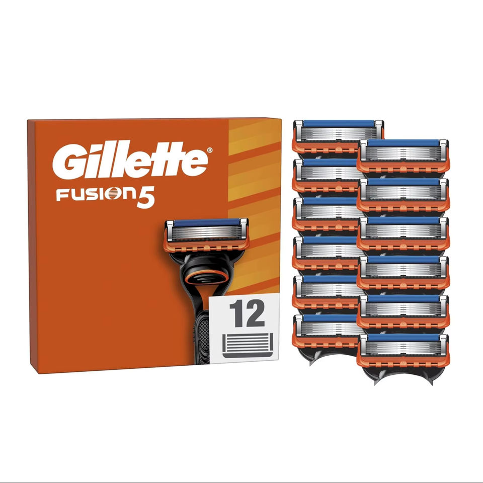 Fusion5ยิลเลตต์แบบเติมได้12ใบพร้อมแถบหล่อลื่นเพื่อประสบการณ์การโกนที่นุ่มนวลและใบมีด5ใบเพื่อผิวเรียบยาวนาน