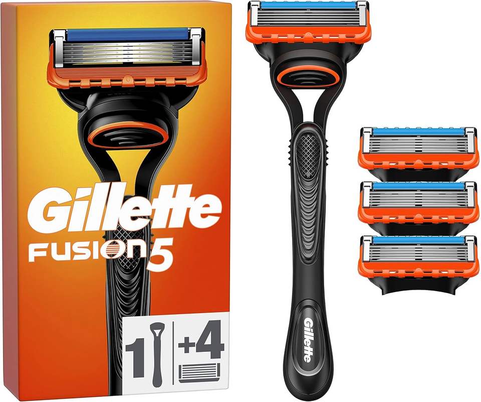ระบบโกนหนวดของผู้ชายยิลเลตต์ Fusion5ด้ามจับ1อันใบมีดรีฟิล4ใบพร้อมแถบหล่อลื่นเพื่อการโกนแบบเรียบ