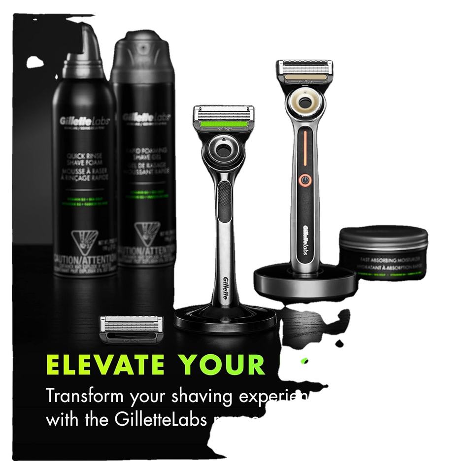 มีดโกนสำหรับผู้ชายยิลเลตต์แล็บส์พร้อมบาร์ขัดผิวชุดโกนหนวดสำหรับผู้ชายมีด้ามจับ1ด้ามใบมีดโกน2ใบ