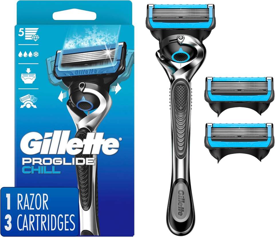 ยิลเลตต์ proshield Chill มีดโกนหนวดผู้ชาย + ใบมีดเติม3ใบสีฟ้า