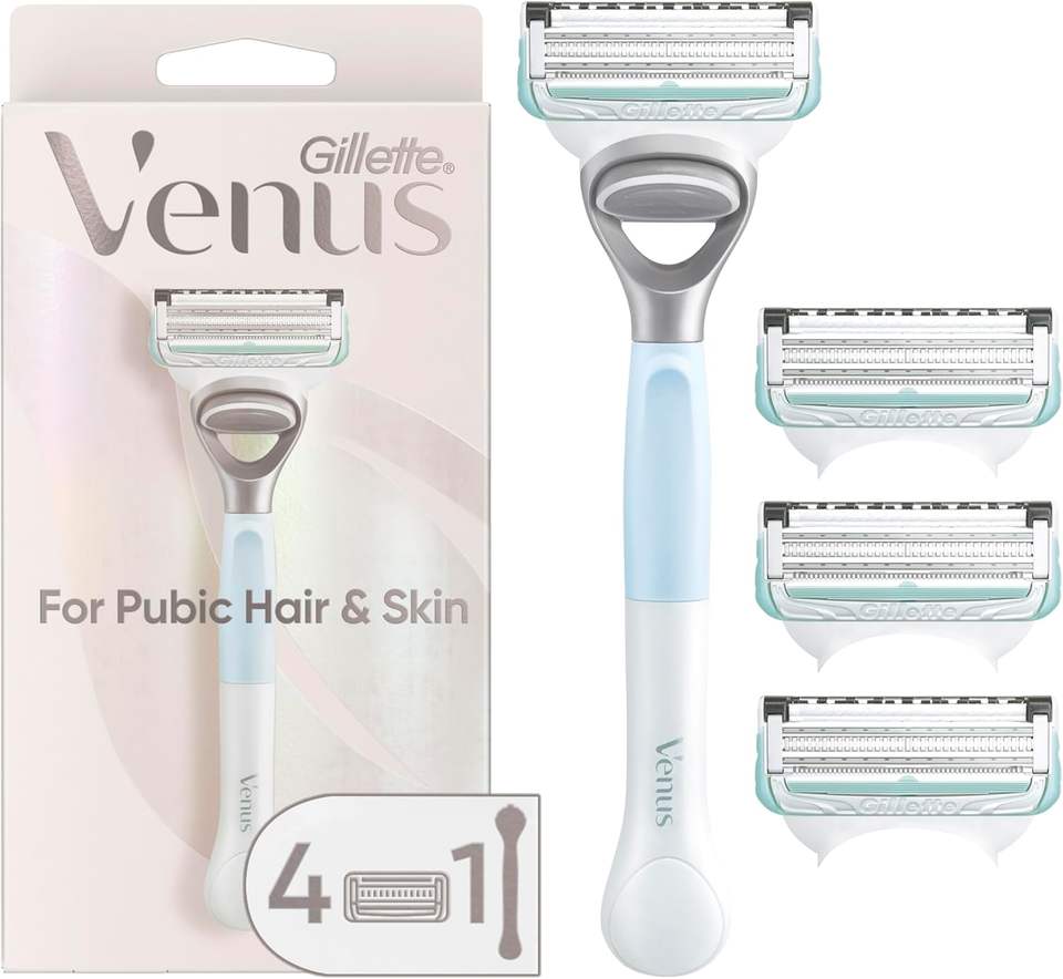 ยิลเลตต์วีนัสสำหรับผมและผิวหนังหัวหน่าวด้ามจับมีดโกนสำหรับผู้หญิง + ใบมีดสำหรับเติม4ใบ