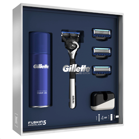 Gillettelabs พร้อมแท่งขัดผิวสำหรับผู้ชาย-ด้ามจับ1ใบมีดโกน4ใบพร้อมขาตั้งแม่เหล็กระดับพรีเมี่ยม