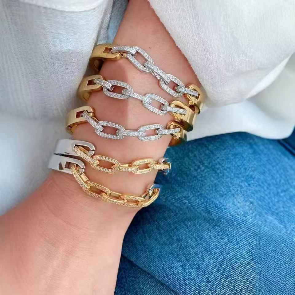 จินี--2025 สร้อยข้อมือดีไซน์ใหม่ สร้อยข้อมือลายเส้นทอง 18K สร้อยข้อมือสแตนเลส
