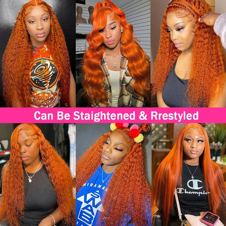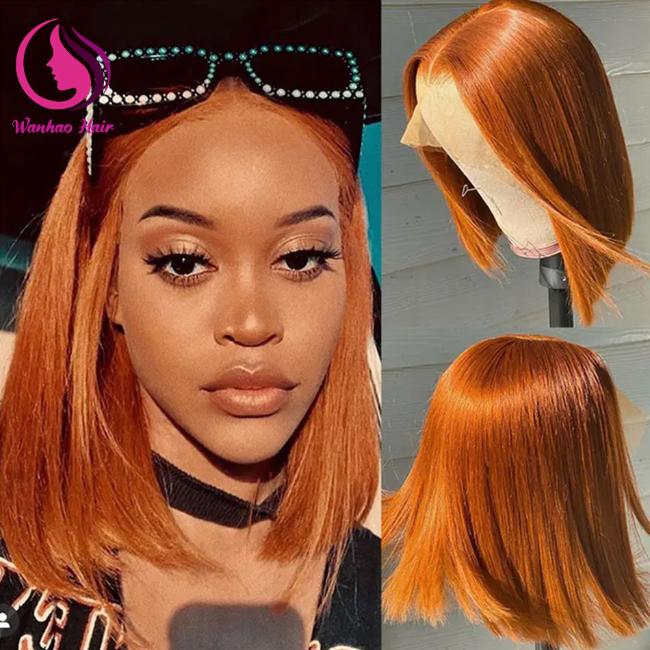 วิกผมบ๊อบวิกผมมีลูกไม้ด้านหน้าสีส้มขิงแต่งได้ตามต้องการ