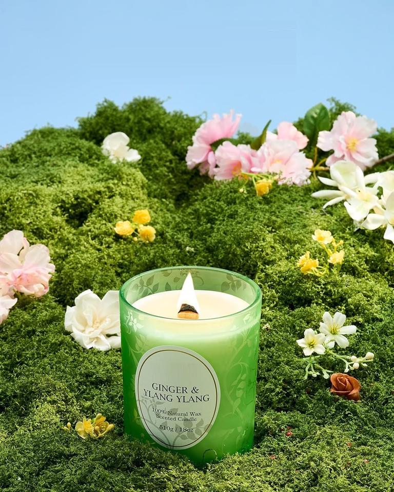 เทียนหอมกลิ่นขิงและกระดังงาทำจากขี้ผึ้งถั่วเหลืองและโถแก้วสำหรับใช้ในบ้านน้ำมันหอมระเหยตกแต่งบ้านเพื่อการส่งออกจำนวนมาก