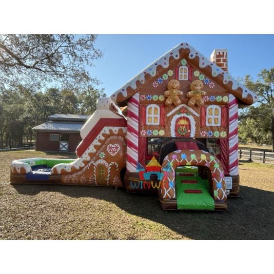บ้านขนมปังขิงบ้านเด้งเป่าลมพร้อมปราสาทกระโดดธีมลูกกวาดสำหรับงานเลี้ยงเด็ก