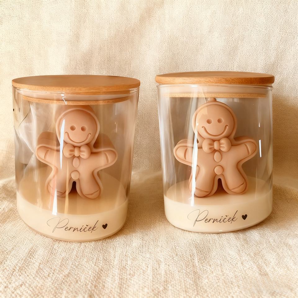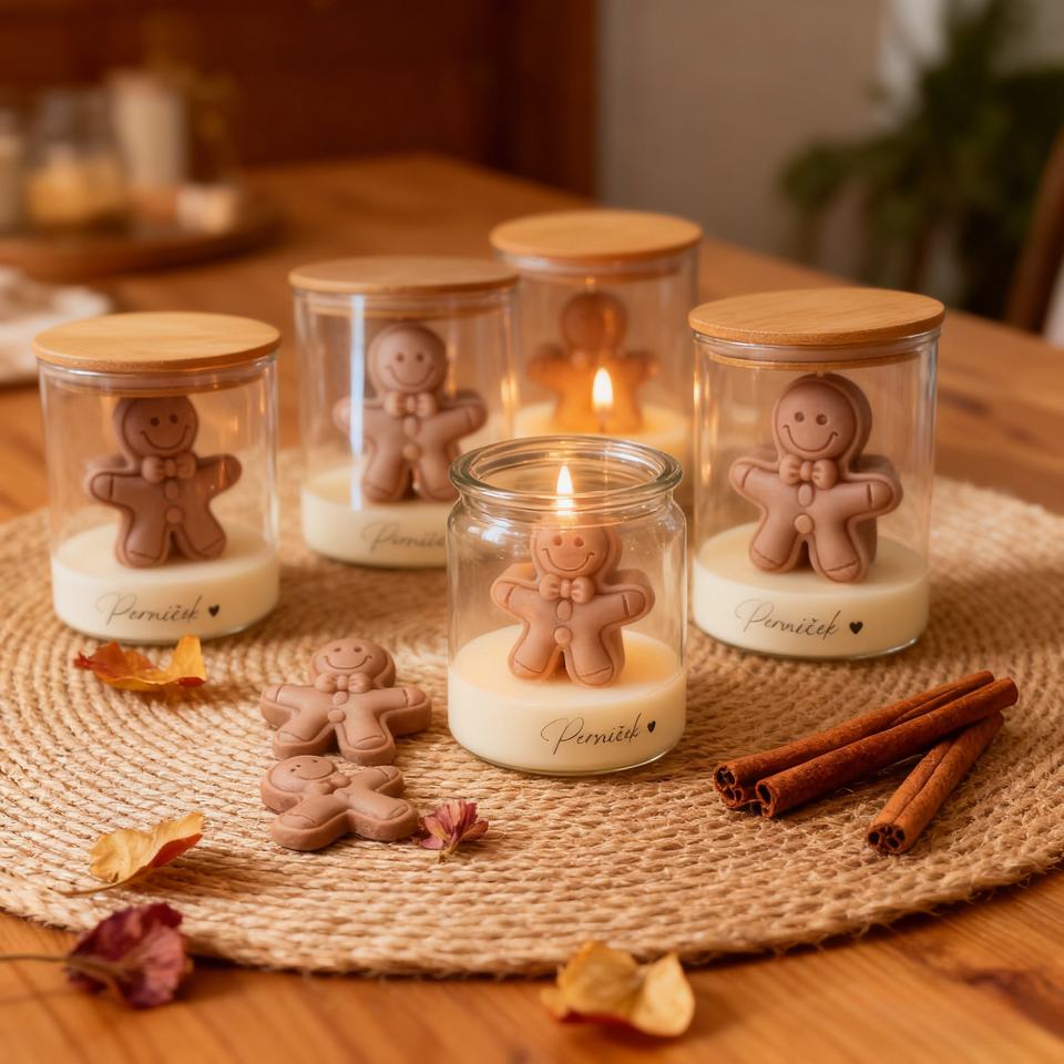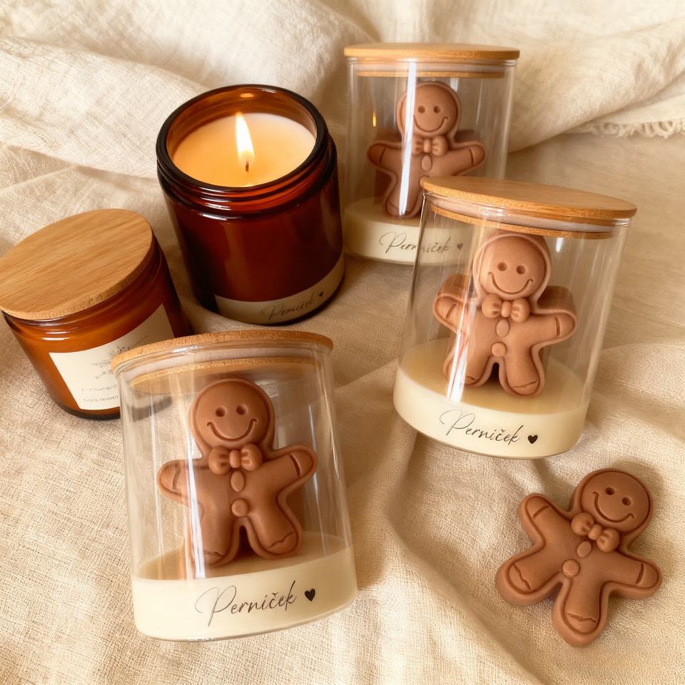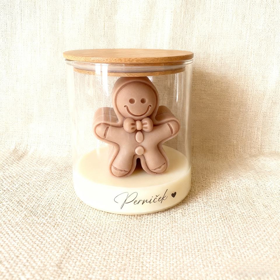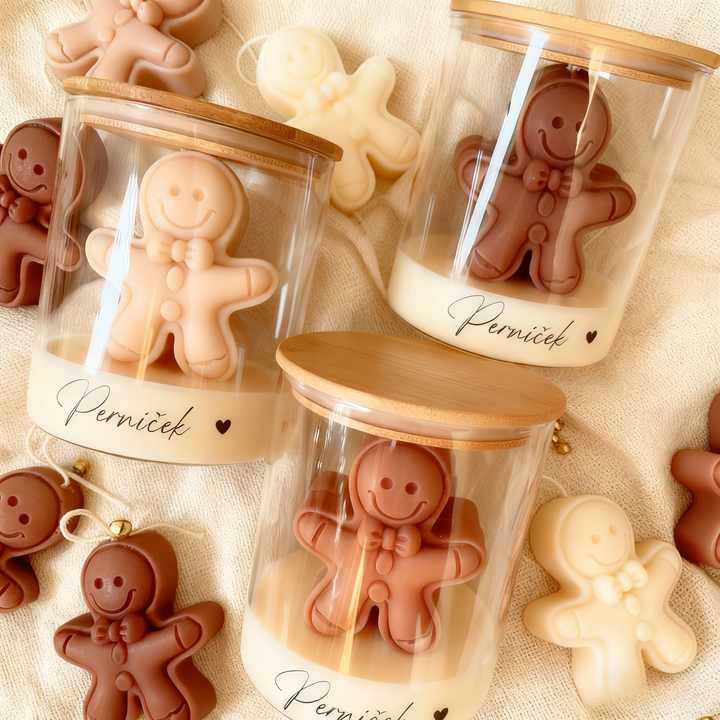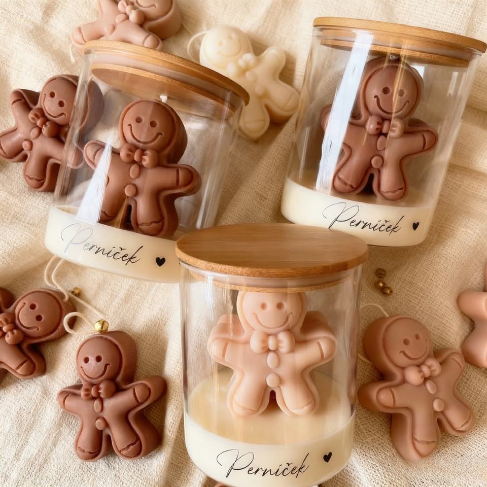 เทียนหอมรูปมนุษย์ขนมปังขิงสำหรับตกแต่งบ้านในเทศกาลคริสต์มาสวันหยุดฤดูหนาวเทียนไขถั่วเหลืองน่ารักพร้อมฝาไม้ไผ่