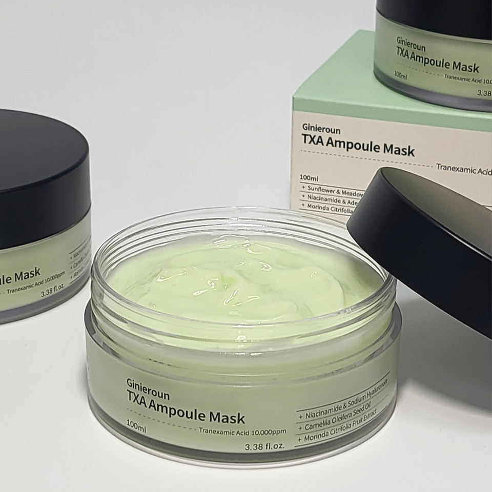 มาส์กแอมพูล TXA จินิเอรอน | ทรานเน็กซามิก แอซิด เฟรคเคิล แคร์ ไบรท์เทนนิ่ง เบลมิช คอร์เรคติ้ง มาส์ก | ผลิตภัณฑ์ดูแลผิวแบบ OEM/ODM