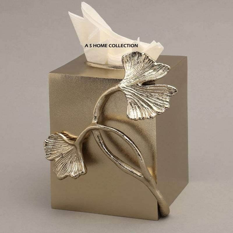 กล่องใส่กระดาษทิชชูดีไซน์ใบแปะก๊วยสไตล์วินเทจ กล่องทิชชูโลหะทรงสี่เหลี่ยมหรูหราทันสมัยสำหรับใช้ในโรงแรมร้านอาหาร
