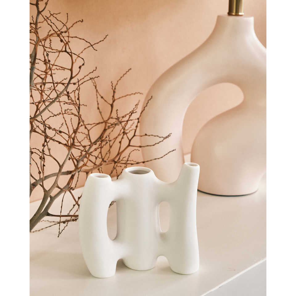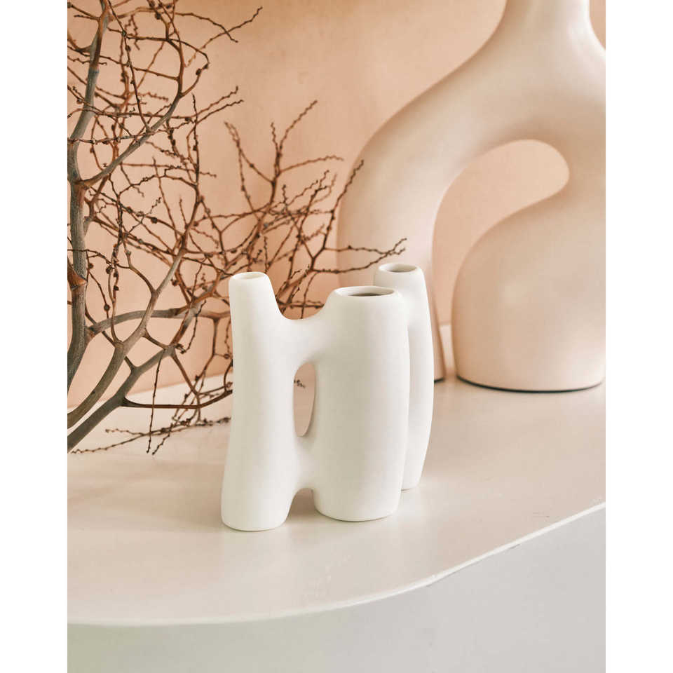 Sepik แจกันเซรามิกสีขาวดีไซน์ลาย CM.12.6X26h