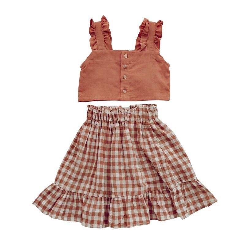 ชุดเสื้อผ้าเด็กผู้หญิง 2020 เสื้อแขนสั้นสำหรับฤดูร้อน กระโปรงลายสก็อตเรียบ