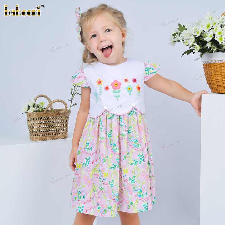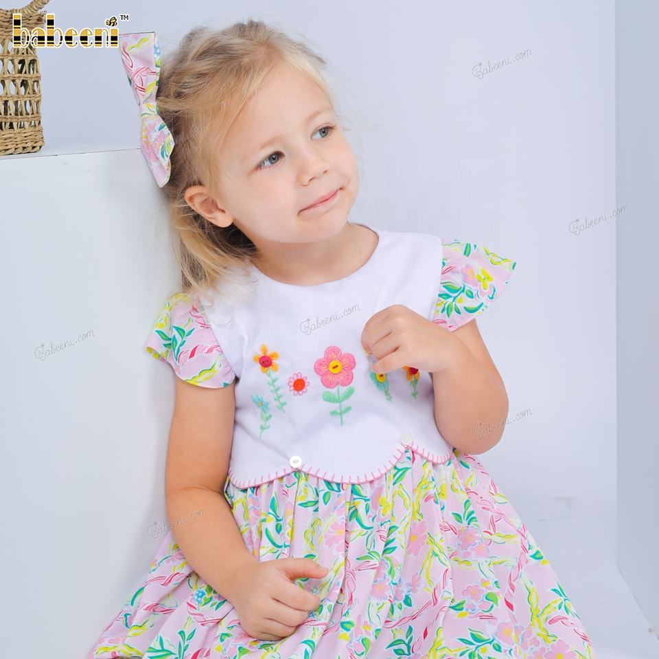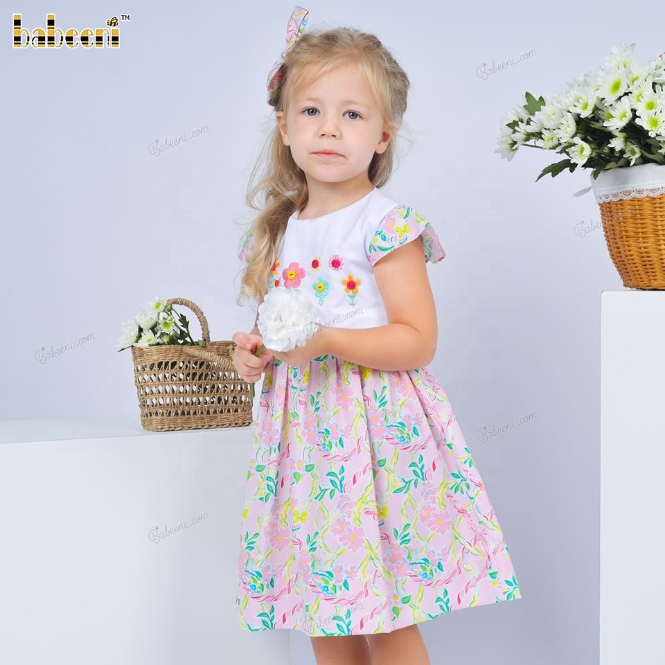 ชุดเดรสเด็กหญิงพิมพ์ลาย4.0ด้วยดอกไม้ชุดเย็บปักด้วยมือ ODM OEM ชุดแต่งกายสำหรับเด็กทารกขายส่งผู้ผลิต-DR4157
