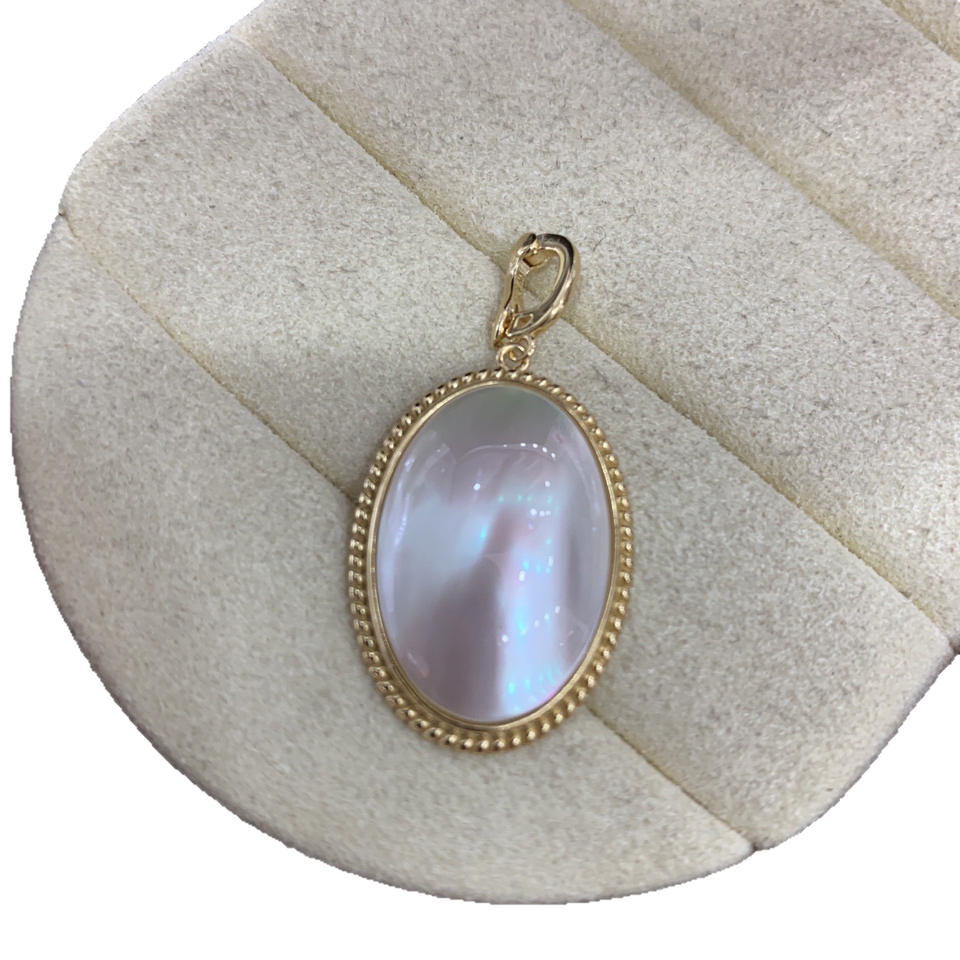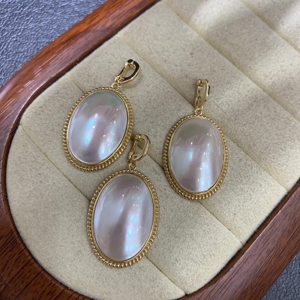 จี้รูปเปลือกหอยม้าน้ำทรงรีแบบยูนิเซ็กซ์ สีขาวบริสุทธิ์ ขนาด 14x21 มม. ชุบทอง 14K คลาสสิก